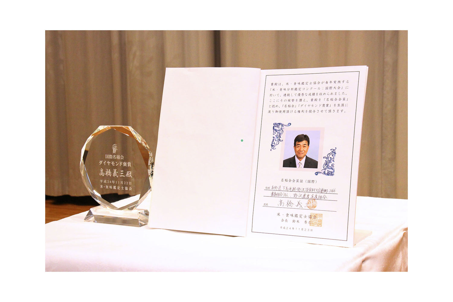 鑽石獎是在歷屆大米口味分析比賽中綜合類金獎的榮譽栽培。獲得鑽石獎的是有機JAS認證和特別栽培米。
